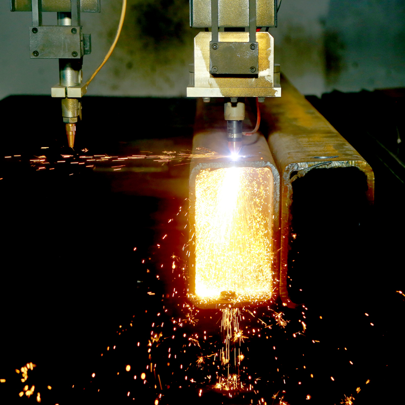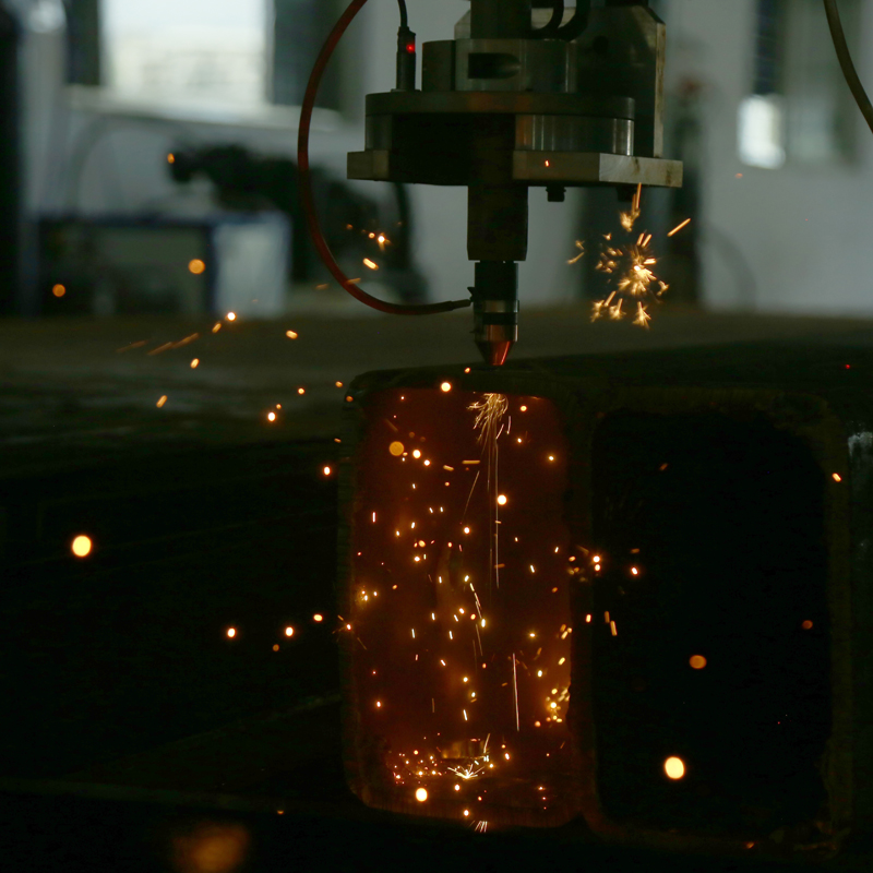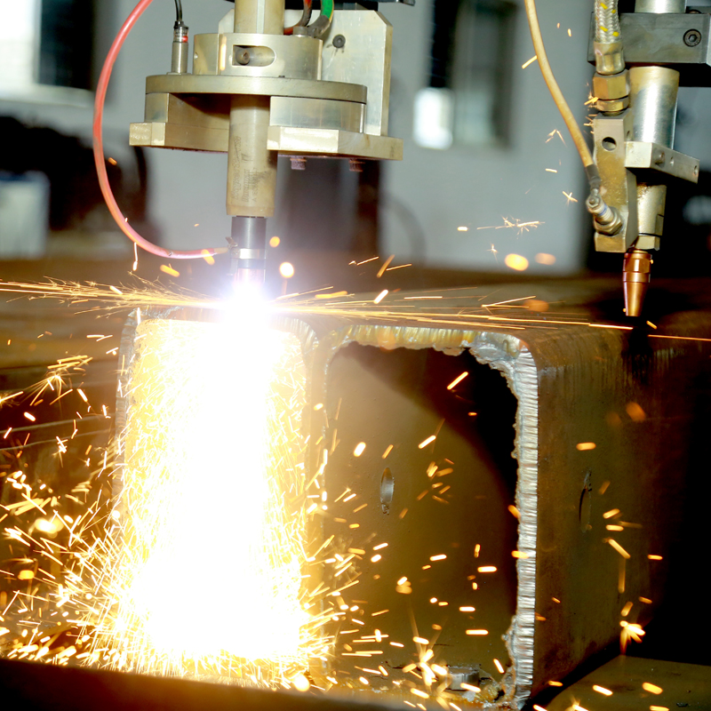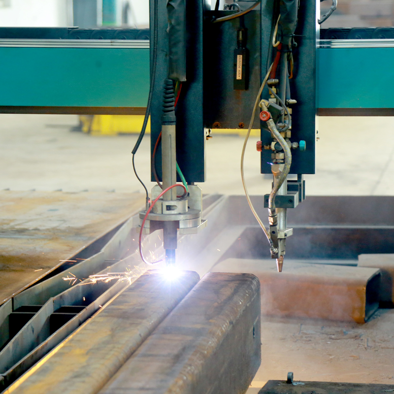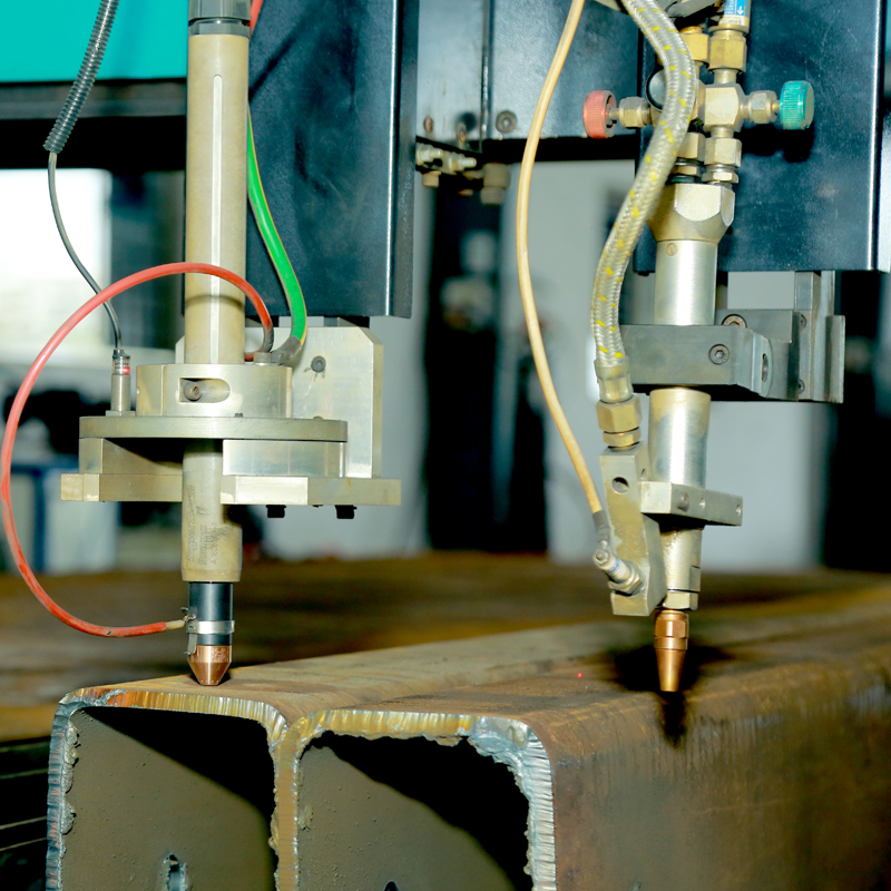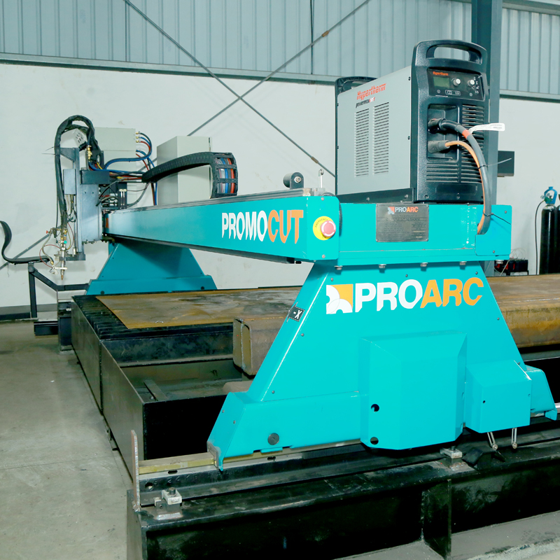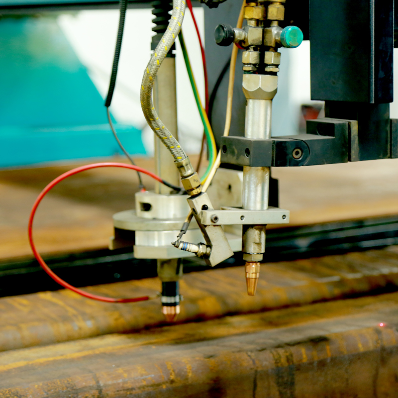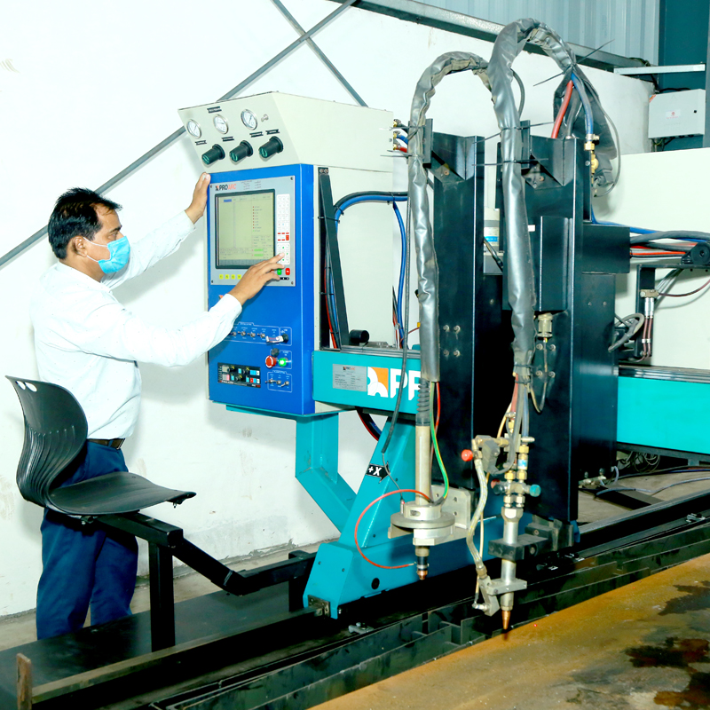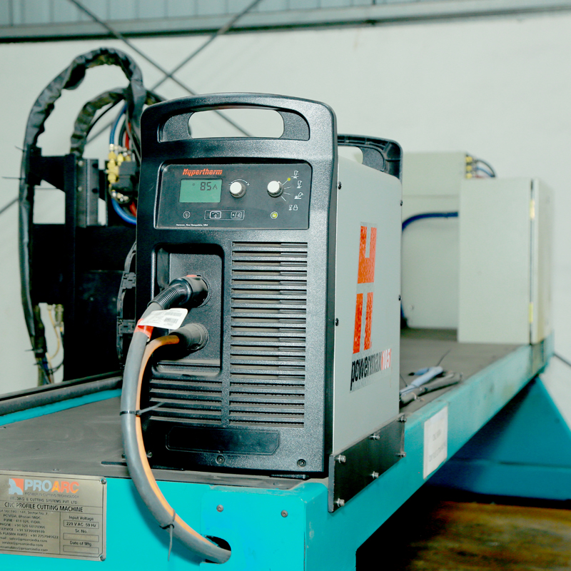 CNC Plasma Cutting – Hypertherm USA make, 100Amp Capacity suitable for cutting upto 20mm thick sheet. CNC oxy fuel cutting machine Capcity upto 200mm thick sheet cutting. Machine suitable to cut Sheet and Pipe. Cutting table area = 3m width by 8 meter length.